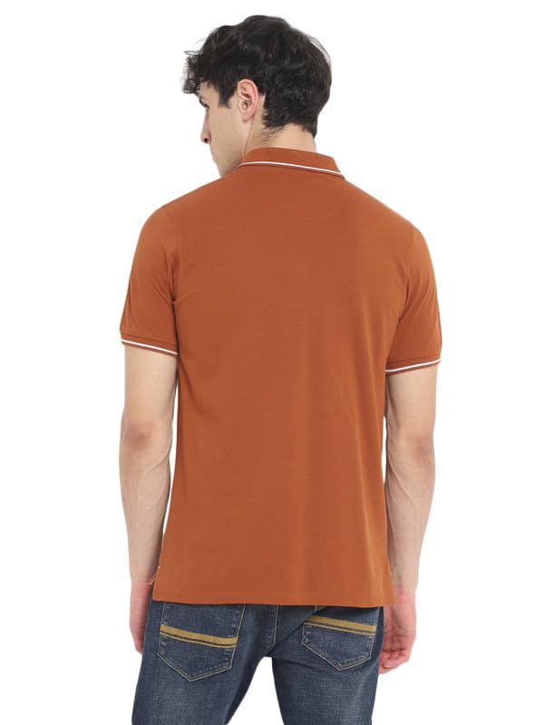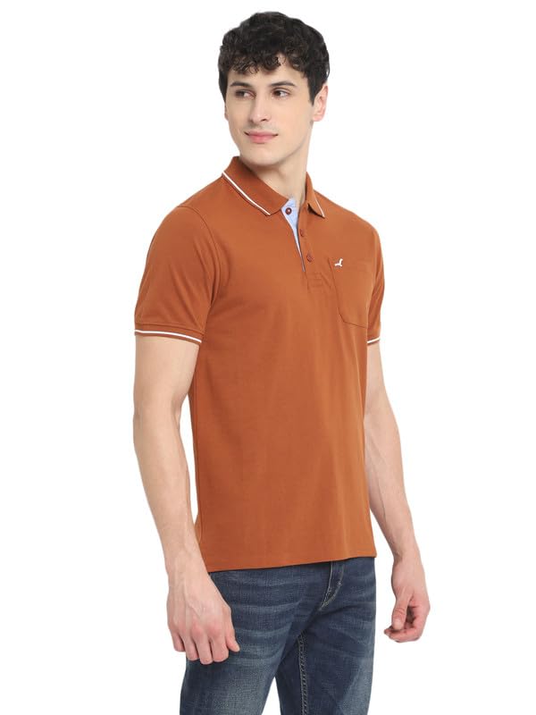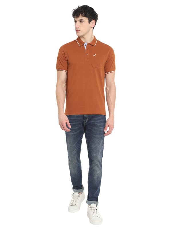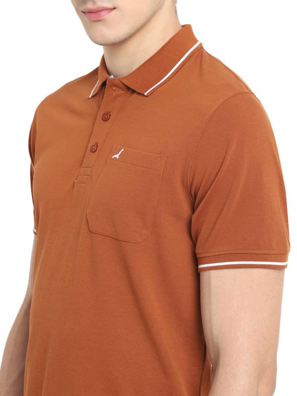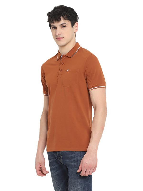 AMERICAN CREW Men Polycotton Regular Fit Polo Collar T-Shirt with Pocket (AC350-3XL_Caramel Cafe)