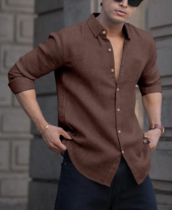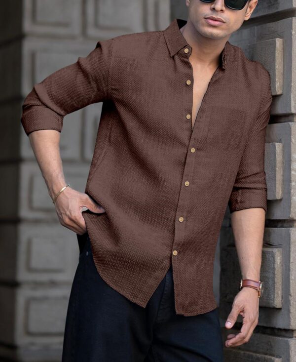 NexaFlair Men Linen Cotton Solid Shirt | Casual | Plain | Full Sleeve | Summer-Regular Fit| Stylish Shirt | Everyday Formal Wear (Alpha, M, Regular, Brown)