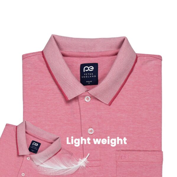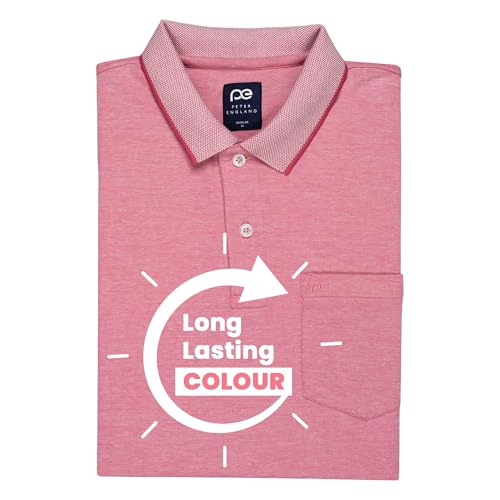 Peter England Men’s Premium Branded Regular Fit Half Sleeve Polo T-Shirt with Pocket | Cotton Rich | Birds Eye Interlock Weave Pink, Large