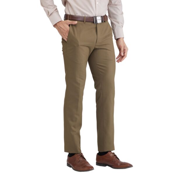 Raymond Men’s Slim Fit Solid Pattern Poly Viscose Blend Flat Front Formal Trouser (Size: 34)-RMTS04928-H7 Dark Khaki
