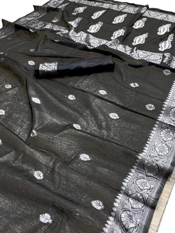 - Colour:: Saree Color: Black. Silver | Blouse Color: Black