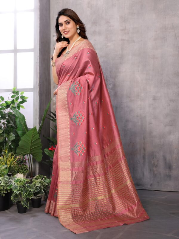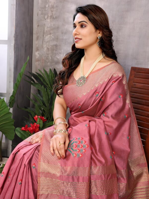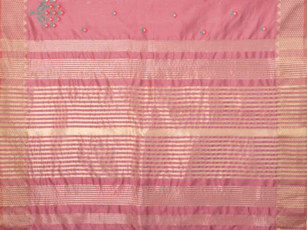 • 𝐒𝐚𝐫𝐞𝐞 𝐖𝐨𝐫𝐤 : Assam Cotton Silk Multi Color Thread Embroidered Saree With Golden Zari And Temple Contrast Border Saree