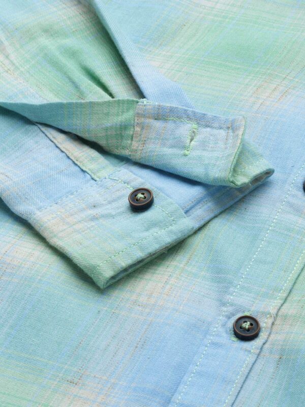 The Indian Garage Co Men Blue & Green Checkered Regular Fit Cotton Casual Shirt