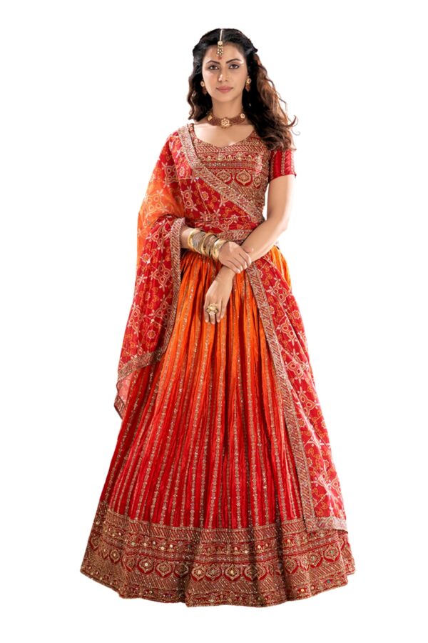 Women’s Chinon Silk Lehenga Choli with Dupatta, Semi-Stitched Designer Ethnic Lehenga Set for Wedding, Party & Festive (1pc)