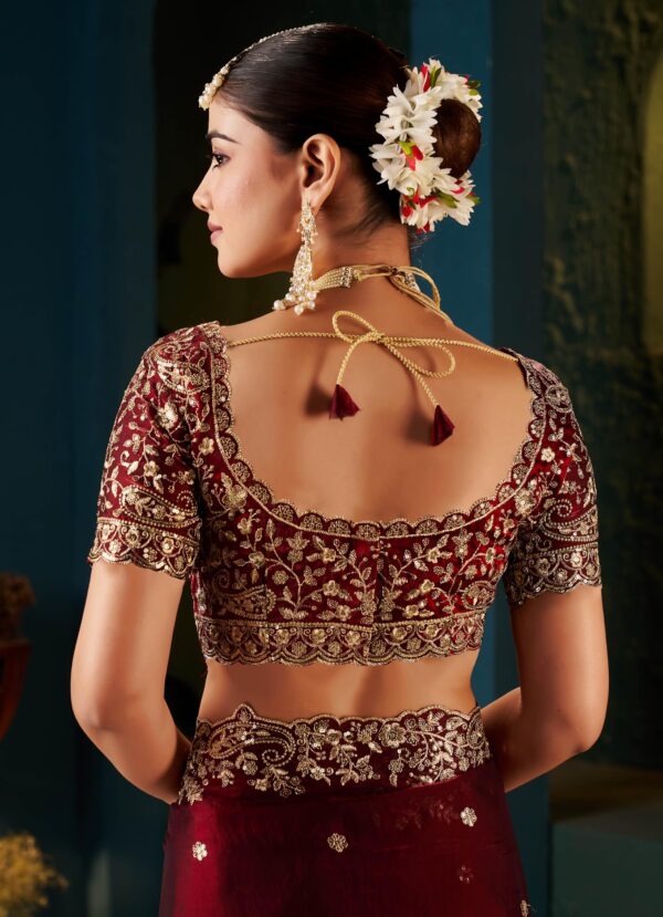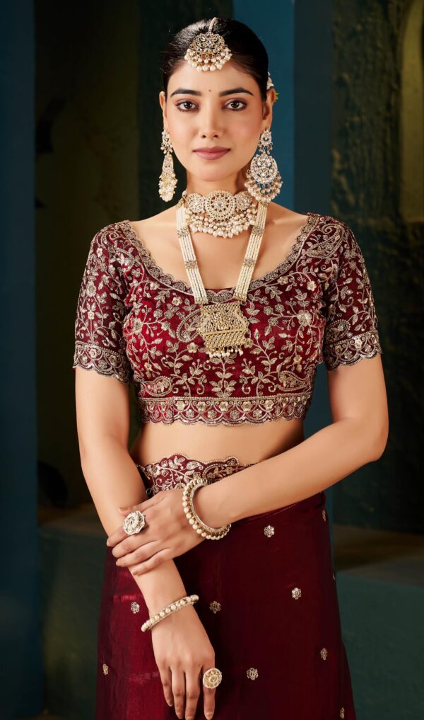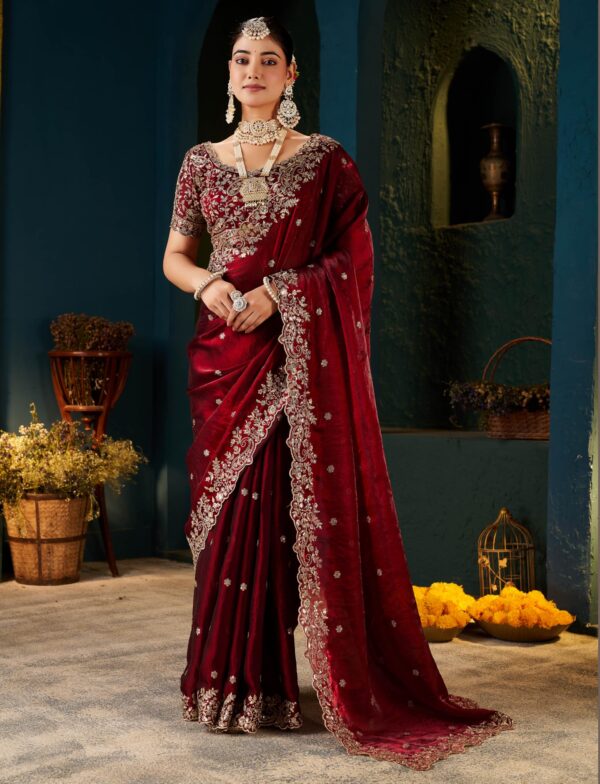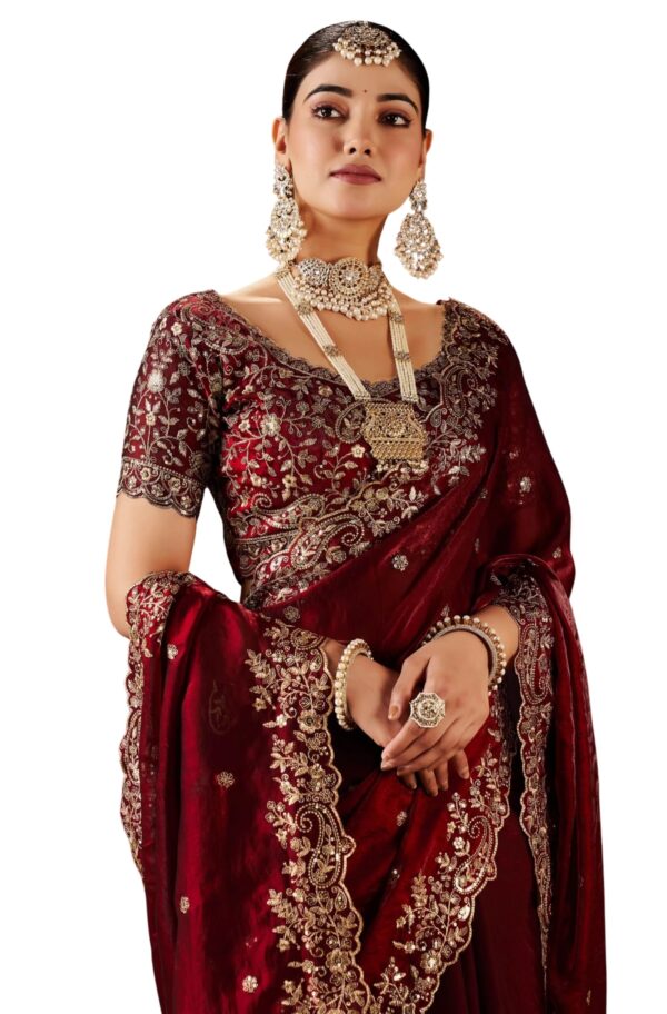 - LUXURIOUS FABRIC: Crafted from premium Zimmy Choo Fandy Silk material with a rich colour, this saree features a smooth satin finish that drapes elegantly for traditional and party occasions