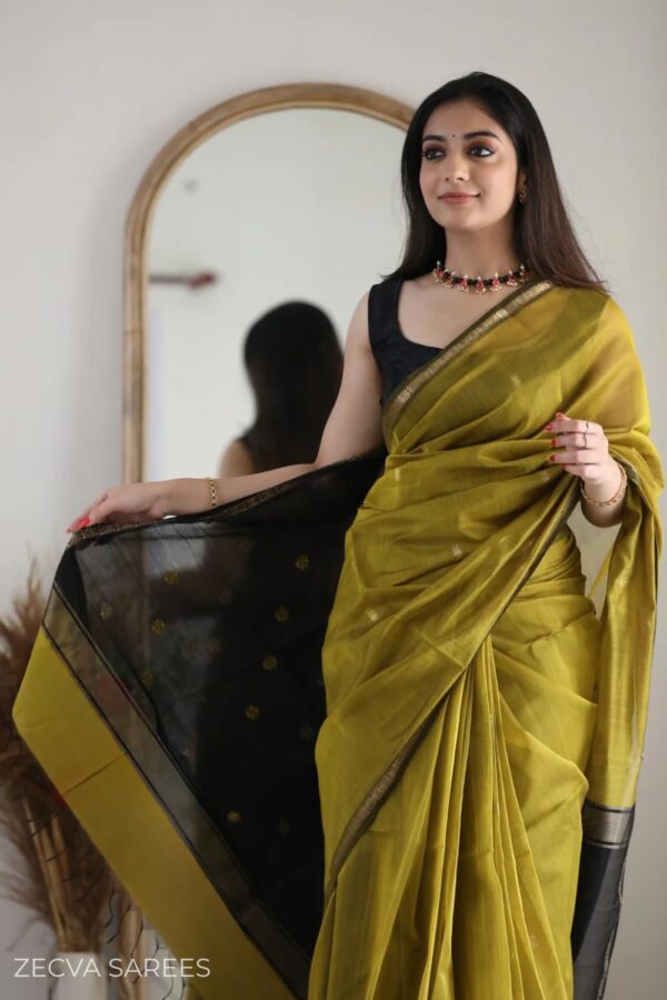 - ★ FABRIC = This Saree Have Soft Lightweight Spun Cotton Silk Fabrics they Are soft, Breathable, Transparent , and Comfortable , Blouse Fabric Running Soft Cotton Silk. Work: Jacquard Woven Weaving Stylish Sari, Golden Woven.